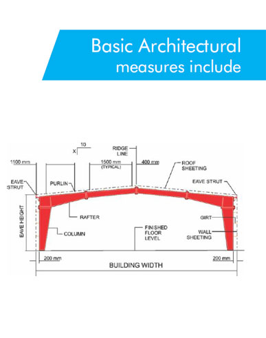 This is the angle of the roof with respect to the horizontal. The most common roof slope in the area is 0.5/10 and 1/10. However any practical roof slope is possible. Steel LineIs the plane of the out of secondary "Z" and "C" members. |