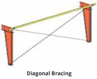 Diagonal Bracing is used in the roofs and walls of buildings to transfer wind forces to the building substructure. Standard bracing system commonly used is galvanized cable strands, solid smooth rods, flat bars, ms pipe or angles.